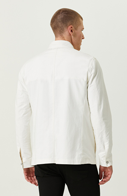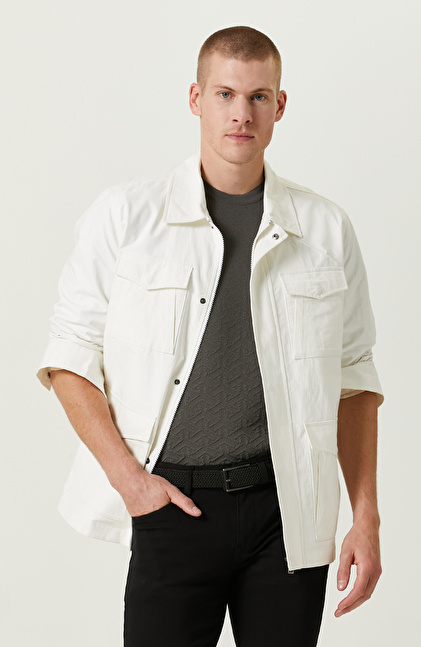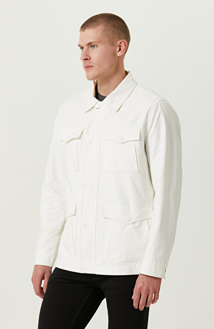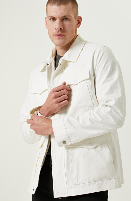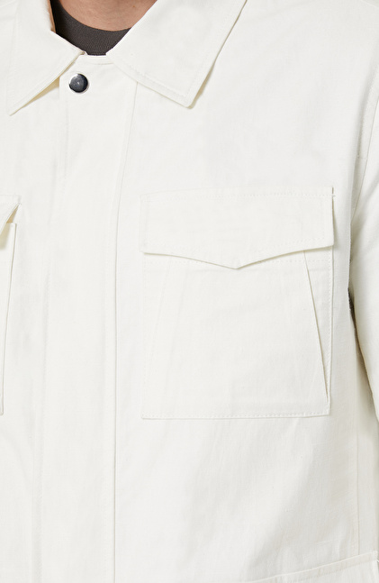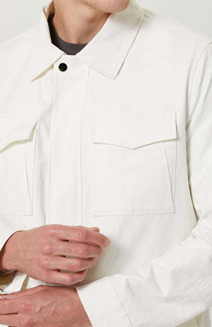 Kapaklı Cep Gömlek Yaka Ekru Ceket