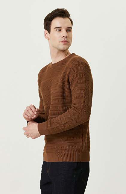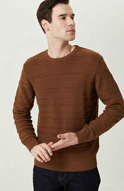 Gündelik işlerinizi yaparken zahmetsizce şık ve iddialı kombinlere imza atmanızı sağlayan NetWork, kış koleksiyonundaki Karamel Desenli Triko Kazak ile stil sahibi erkeklerin seçimidir. Rahat ve sınırsız hareket sağlamak için bisiklet yaka ve uzun kol olarak tasarlanan kazak, zamansız silüeti ile basic bir tarzı öne çıkarır. Triko kumaşın desenli dokusu ise casual kış kombinlerine sıcaklık katar. Kazağın slim fit formu ise modern ve şehirli erkeklerin stillerini kusursuz göstermelerini sağlar. Siz de karamel renkteki tasarımı; koyu tonlarda jean pantolon ve kahverengi Oxford ayakkabılarla kombinleyerek cesur, lüks ve havalı bir şıklığa imza atabilirsiniz.