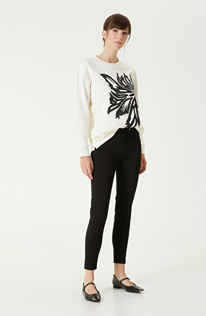 Kırık Beyaz Aplike Nakışlı SweaTshirt