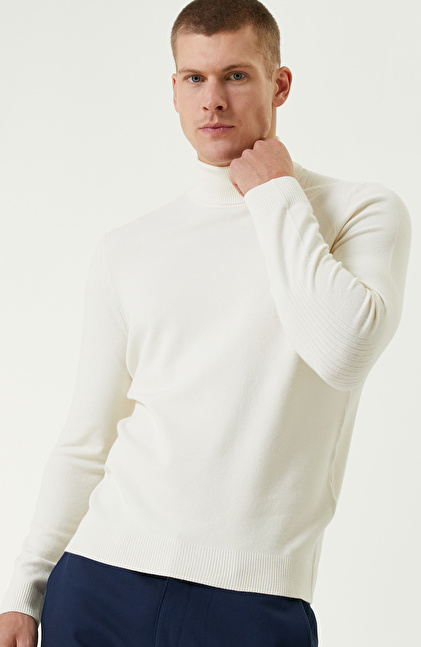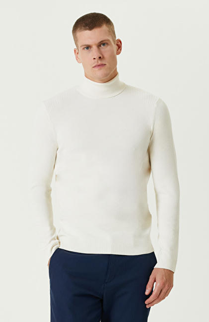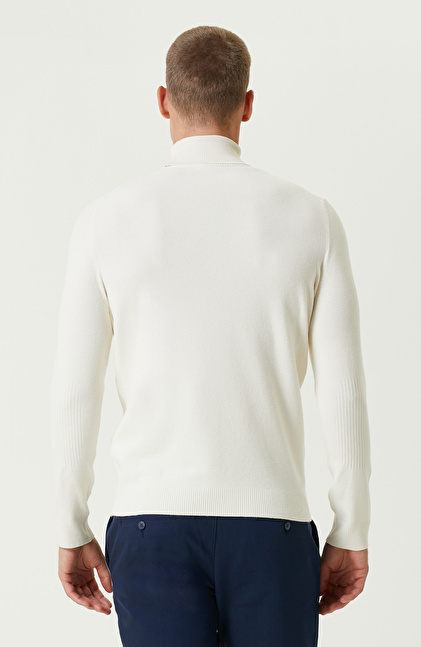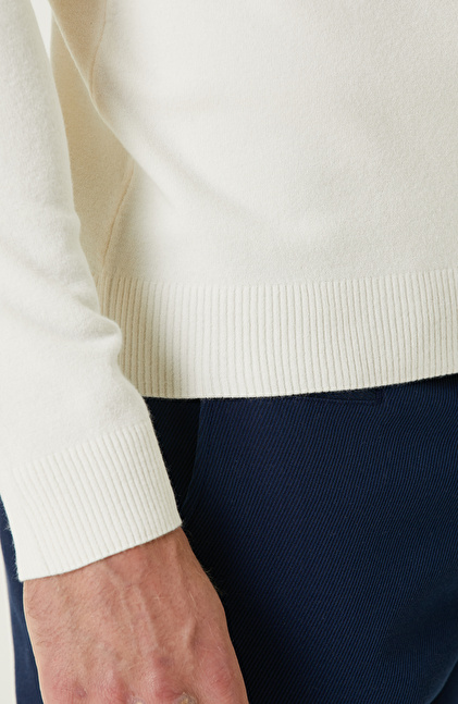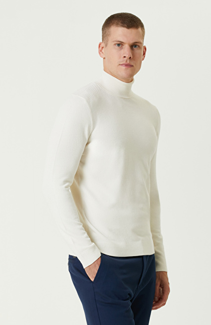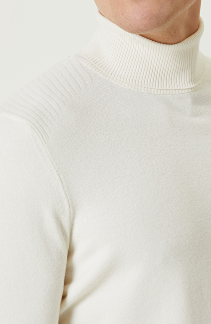Kırık Beyaz Balıkçı Yaka Triko Kazak
