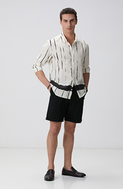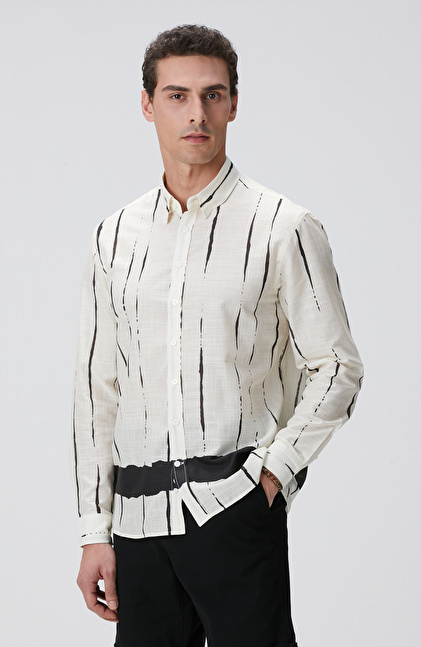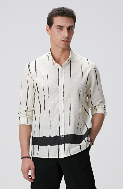 Kırık Beyaz Baskılı Gömlek