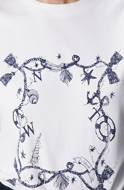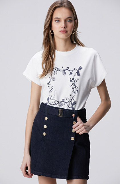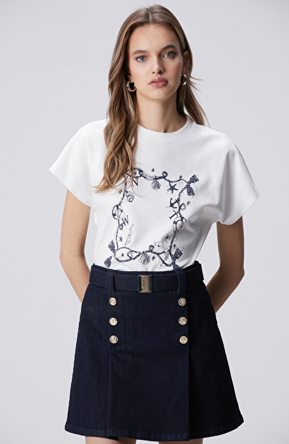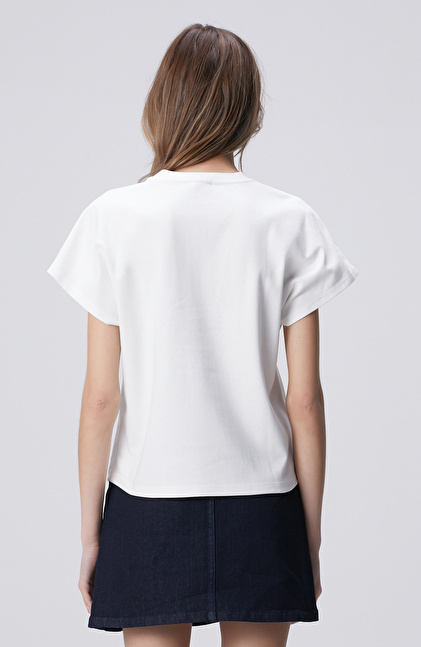 Kırık Beyaz Baskılı Hotfixli T-shirt