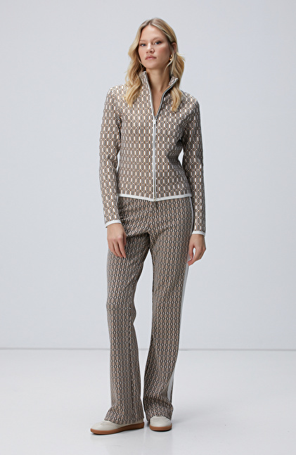 Kırık Beyaz Bej Desenli Hırka