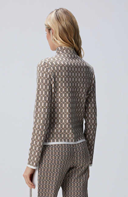 Slim Fit; Dik Yaka; Uzun Kol; Desenli; Triko Hırka