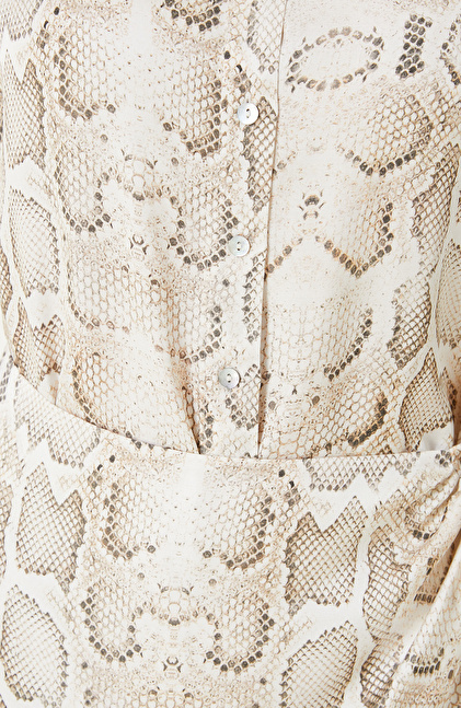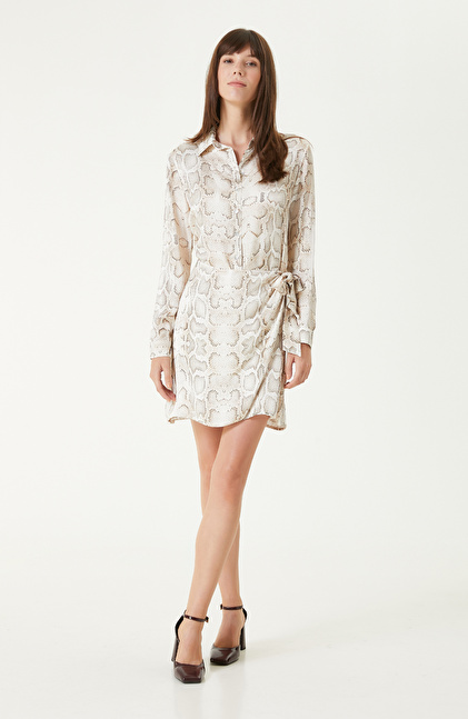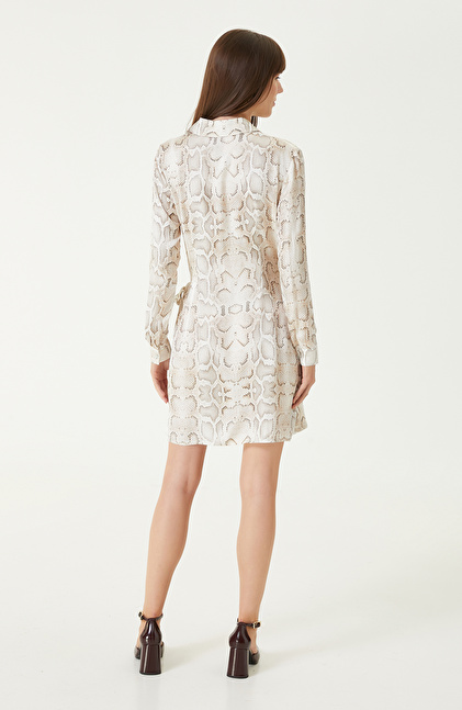 Kırık Beyaz Bej Desenli Mini Elbise