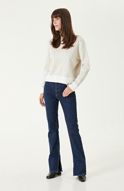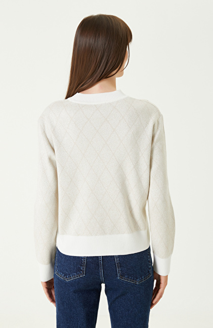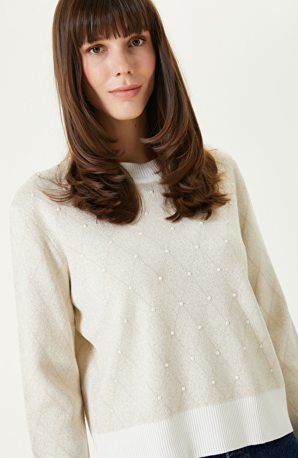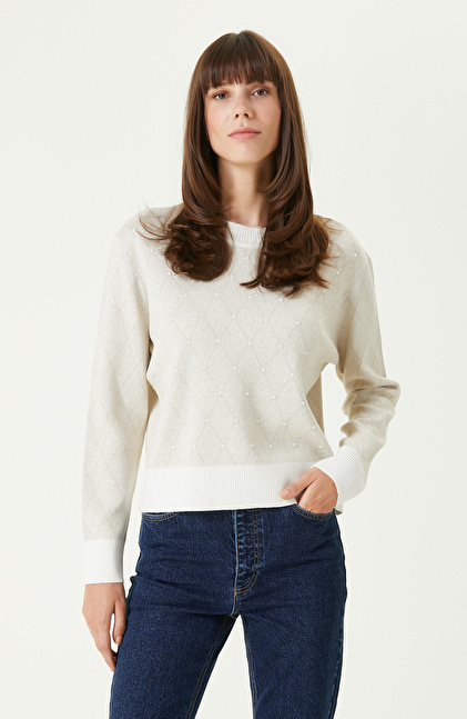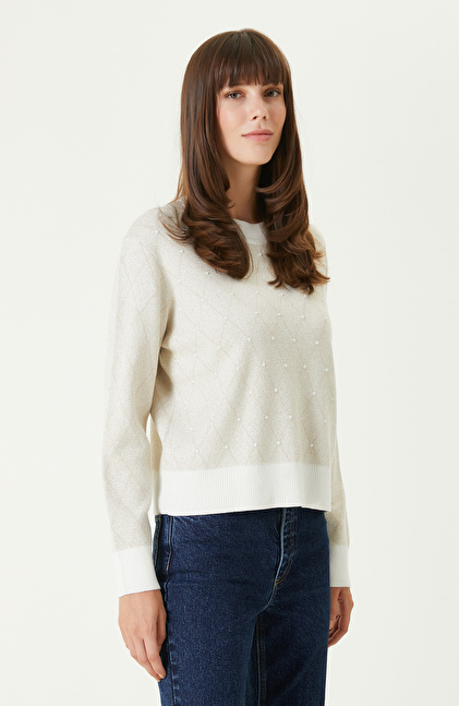 Kırık Beyaz Bej Omuz Detaylı Triko Kazak