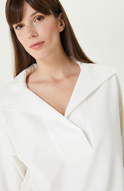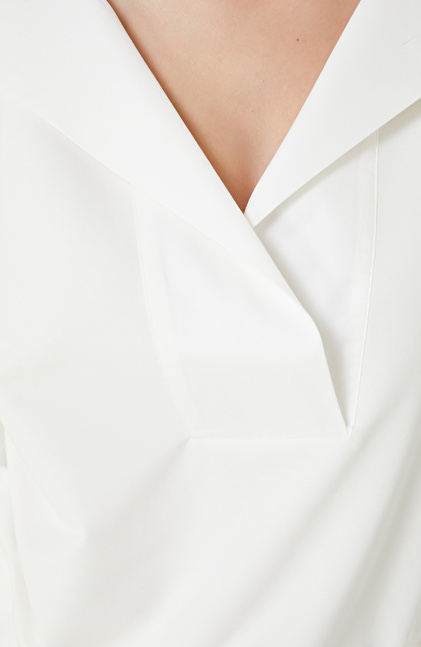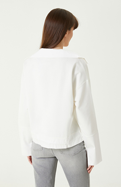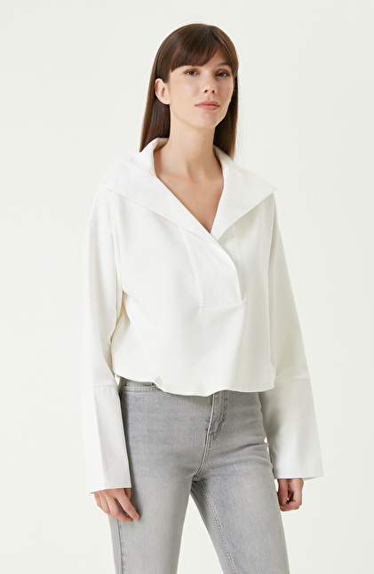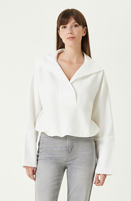 Kırık Beyaz Bel Büzgülü Örme Bluz