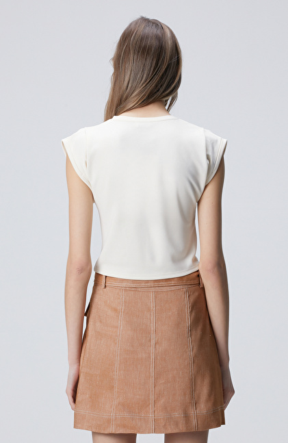 Kırık Beyaz Beli Halka Aksesuar Detaylı T-shirt
