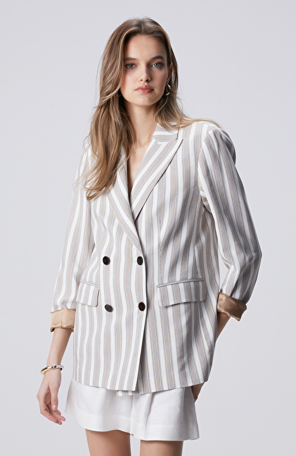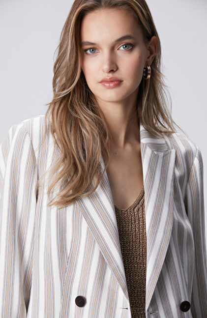 Kırık Beyaz Çizgili Ceket