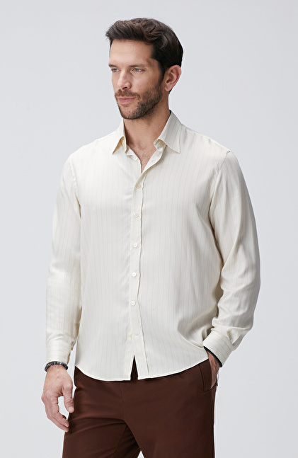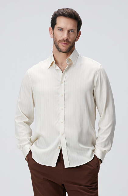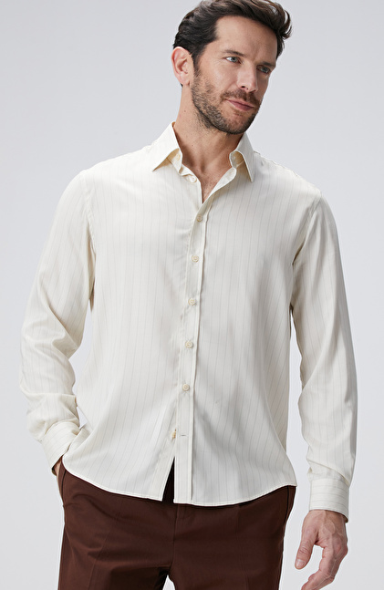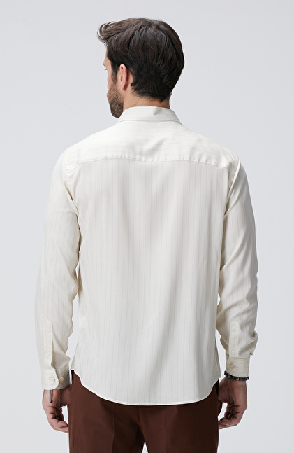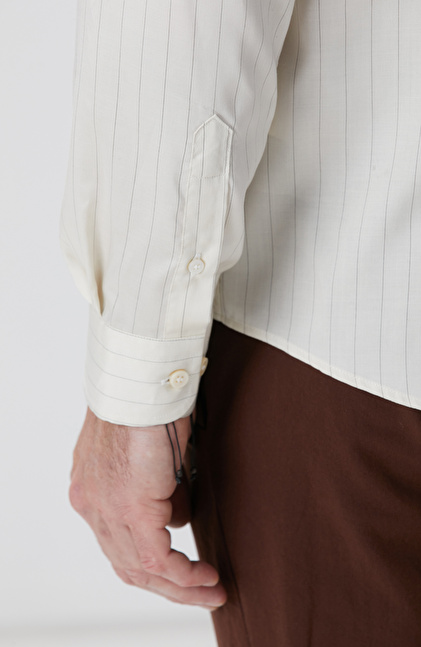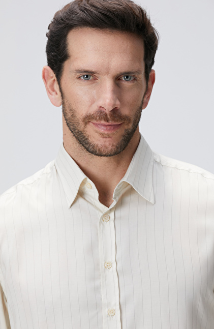 NETWORK Smart Casual Kırık Beyaz Çizgili Gömlek