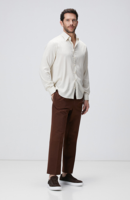 Comfort Fit; Alttan Britli Yaka; Uzun Kol; Çizgili; Dokuma Gömlek