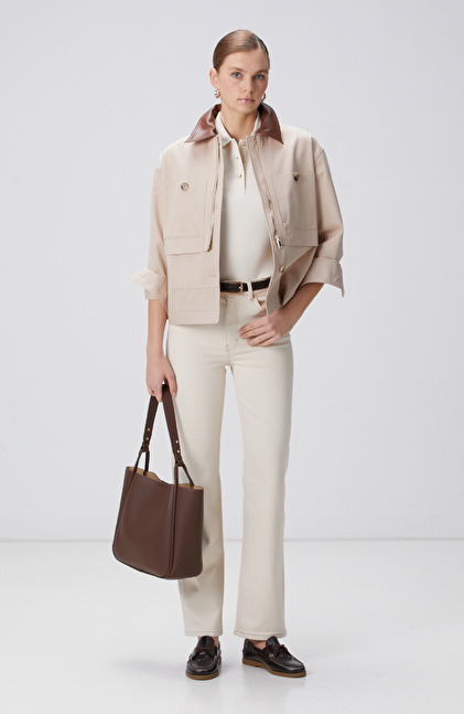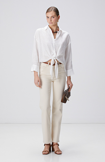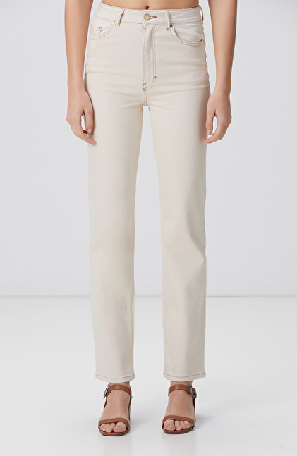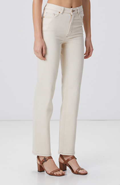 Kırık Beyaz Denim Pantolon