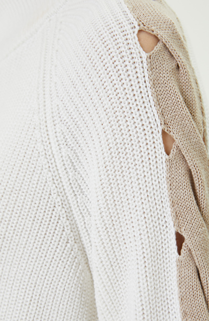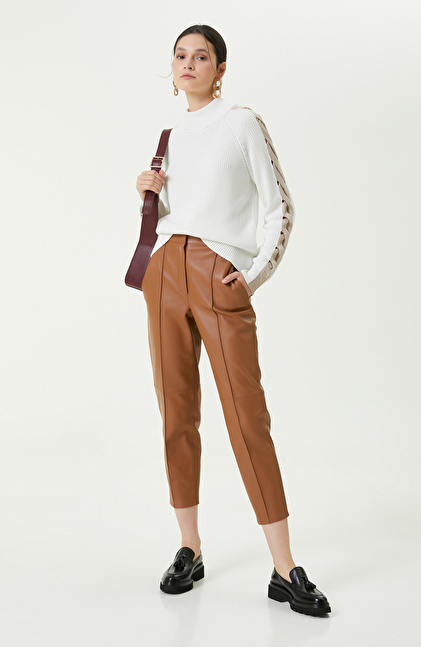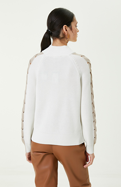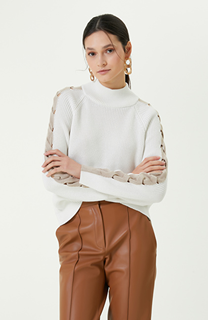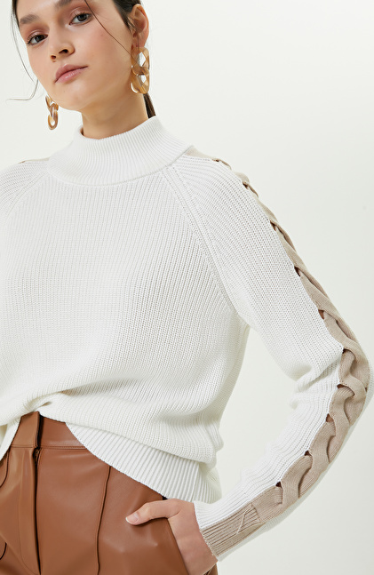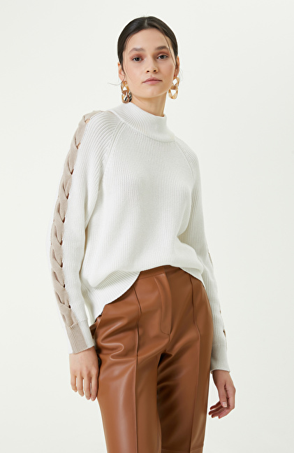 NetWork kış koleksiyonunun Endless Story serisinin zamansız parçaları arasında yer alan Kırık Beyaz Desenli Bisiklet Yaka Triko Kazak, casual kombinlere iham veren detaylara sahiptir. Kol üzerinde yer alan vizon saç örgü detayı sayesinde benzersiz kombinler oluşturmanıza yardımcı olur. Bisiklet yaka tasarımı denim pantolonlarla mükemmel eşleştir. Çok yönlü kullanıma sahip triko kazak, deri ve süet kombin öğeleriyle ideal kış görünümler yaratmanızı sağlar. Desenli trikosu ise sade ve zarif kadınlara hitap eder. Siz de kırık beyaz kazağı; kahverengi süet pantolon, vizon deri mont, deri el çantası ve kahverengi, süet loafer modelleriyle kombinleyebilir, soft görünümler oluşturabilirsiniz.
