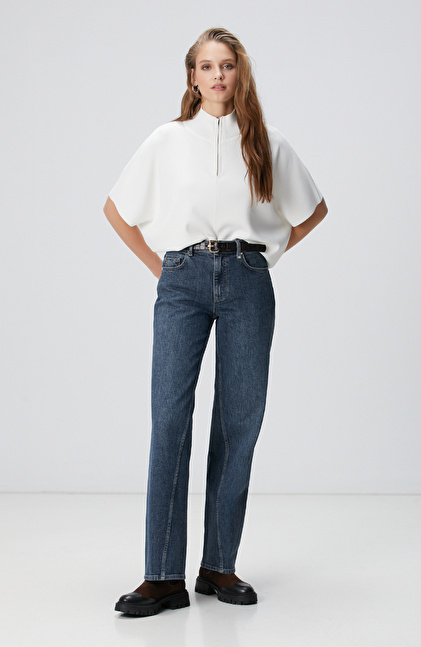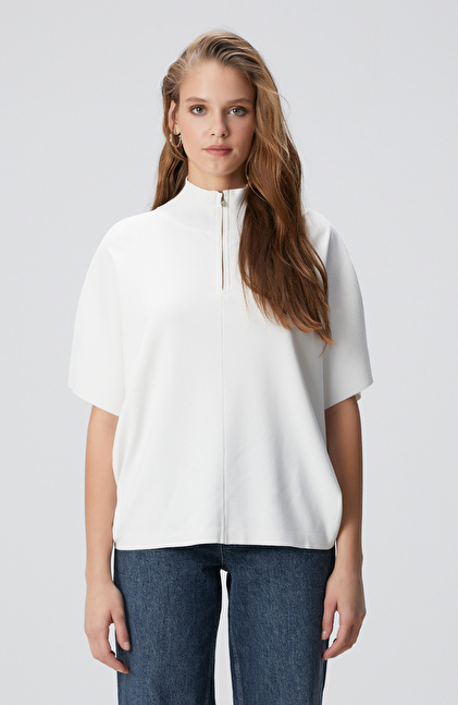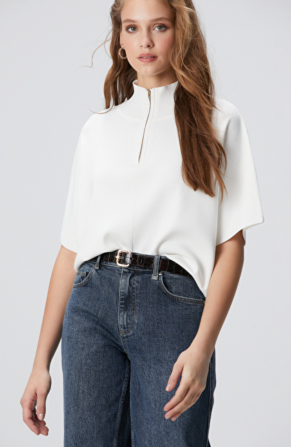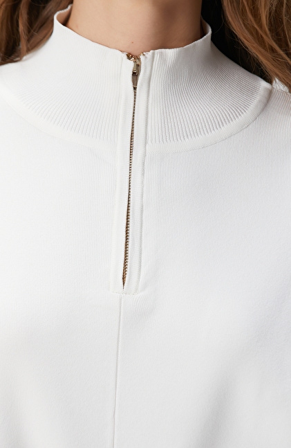 Kırık Beyaz Dökümlü Basic Triko Kazak