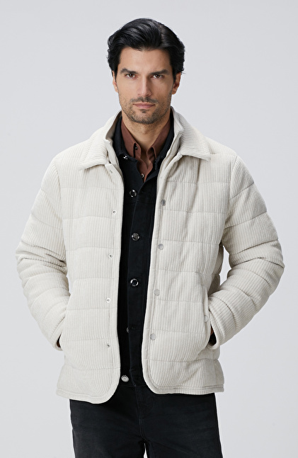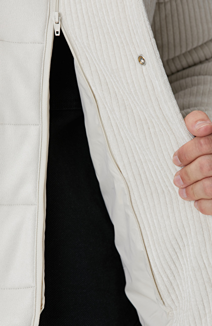 Kırık Beyaz Fitilli Kadife Puffer Coat Ceket
