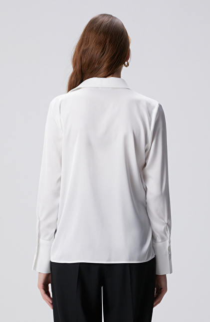 NETWORK Kırık Beyaz Geniş Manşetli Saten Gömlek
