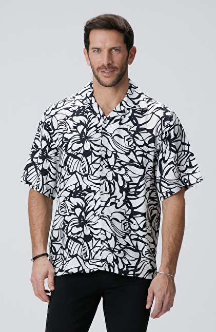 Comfort Fit; Apaş Yaka; Baskılı; Relaxed Gömlek