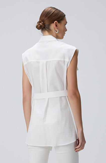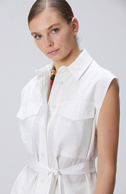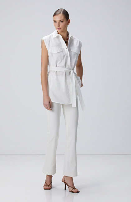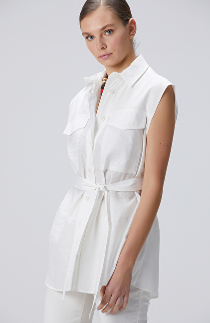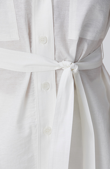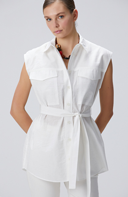 Basic Fit; Gömlek Yaka; Kolsuz; Beli Kuşaklı Gömlek; Çift Cepli