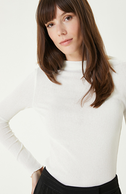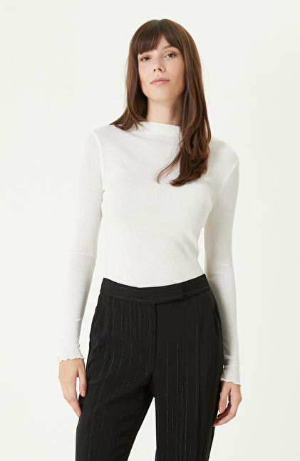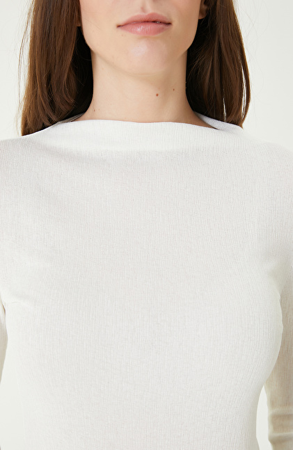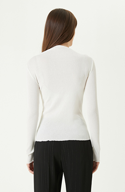 Kırık Beyaz İnce Örme Uzun Kol Tshırt
