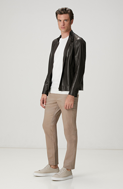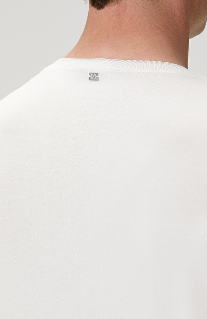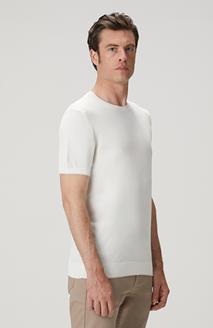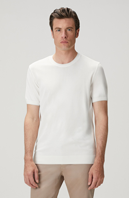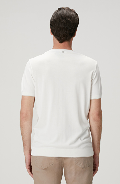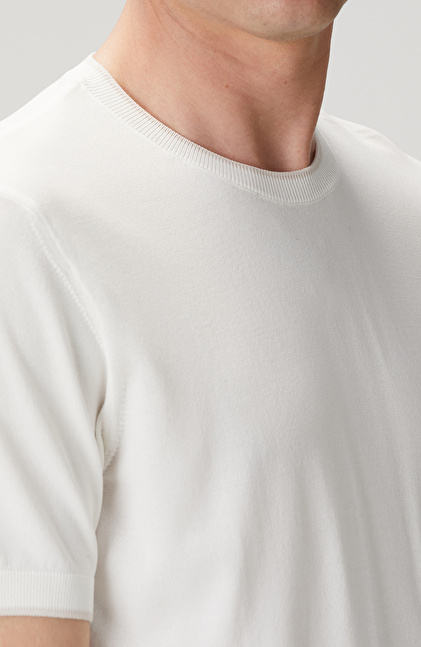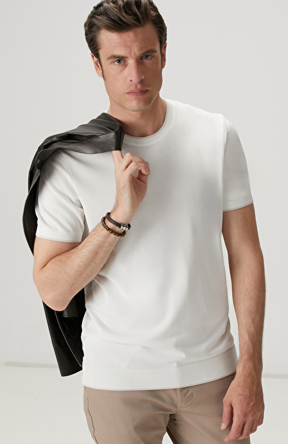 Slim Fit; Bisiklet Yaka; Kısa Kol; Yaka Kontrast Kendinden Şerit Detaylı Kazak