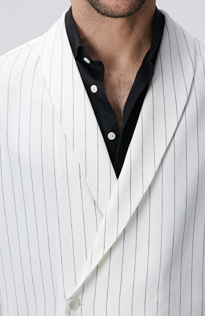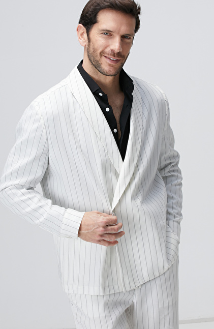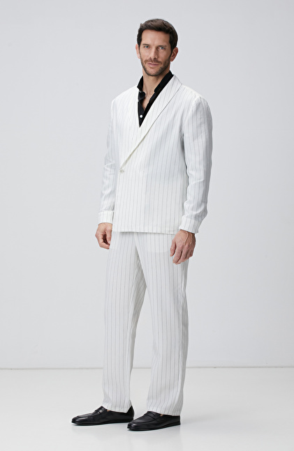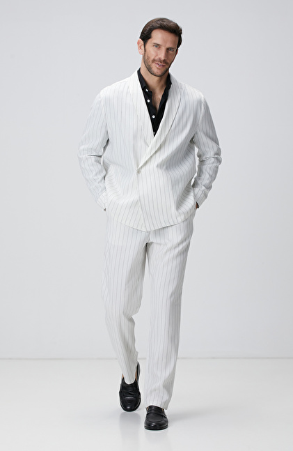 Kırık Beyaz Keten Karışımlı Takım Elbise