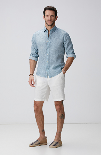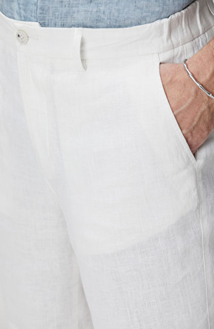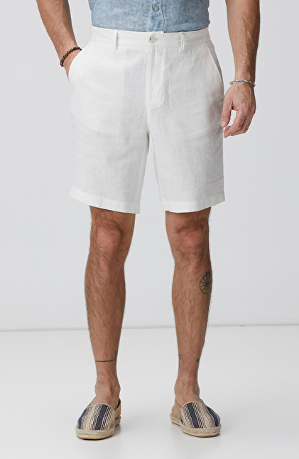 Kırık Beyaz Keten Şort