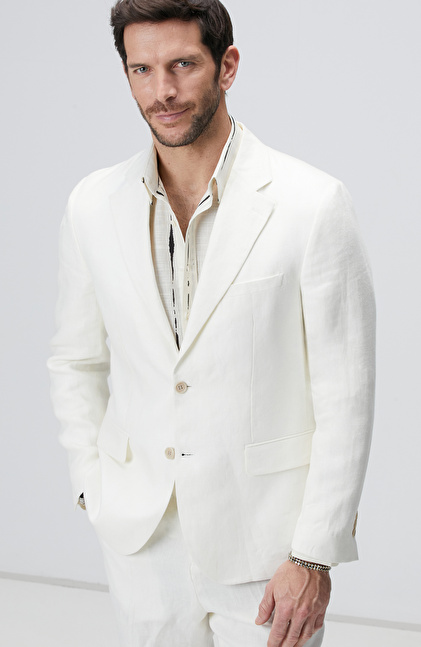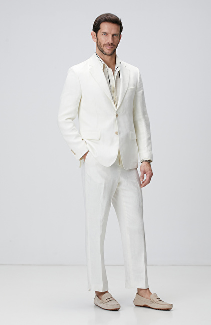 Kırık Beyaz Keten Takım Elbise