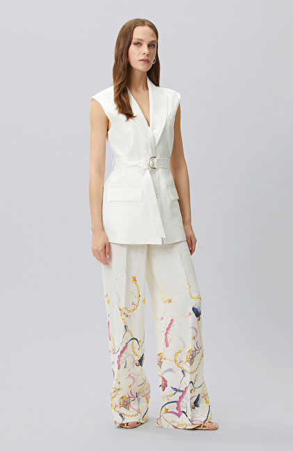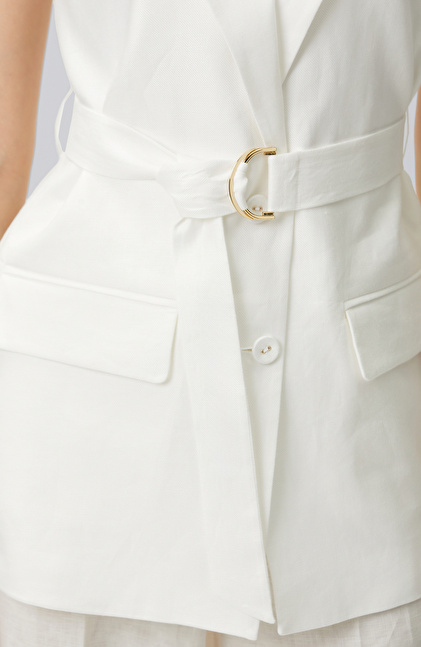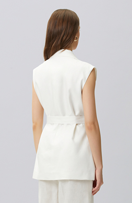 Kırık Beyaz Keten Yelek