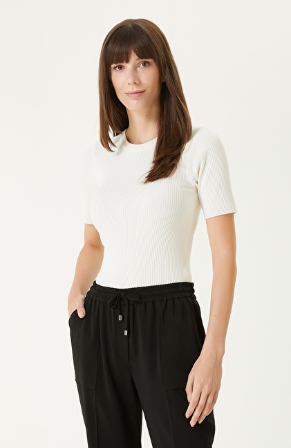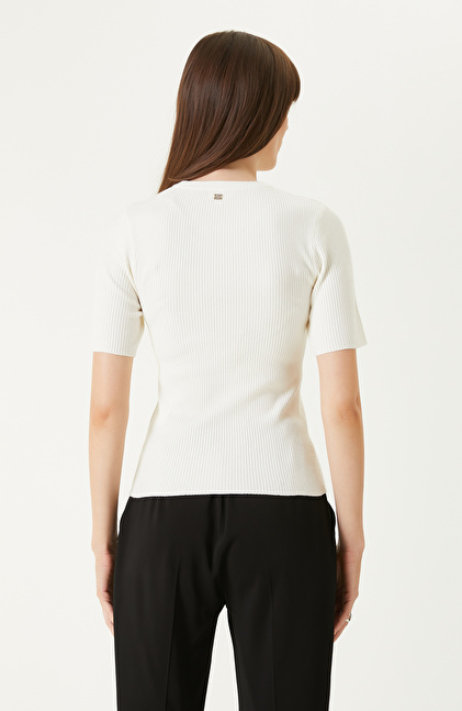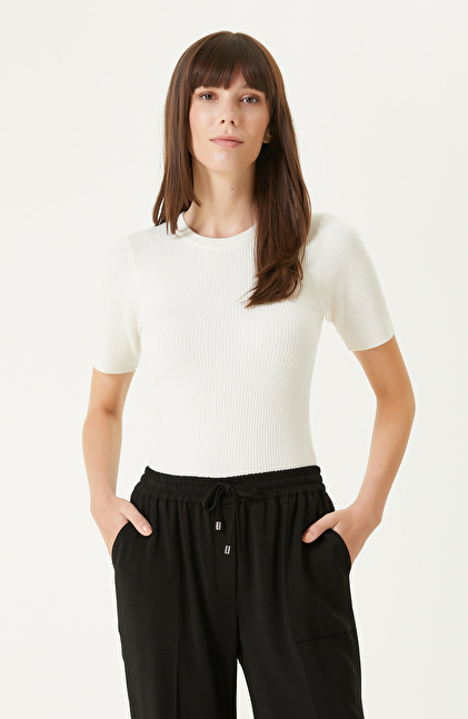 Kırık Beyaz Kısa Kol Basıc Triko Kazak