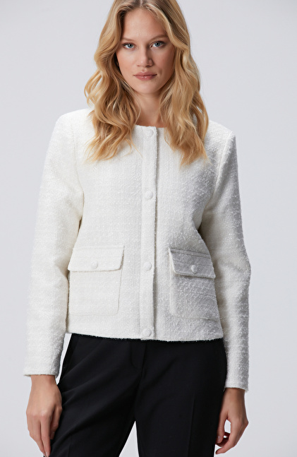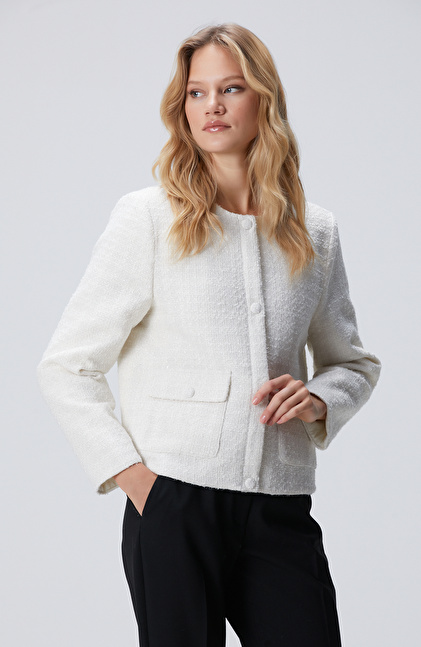 Kırık Beyaz Kısa Mont