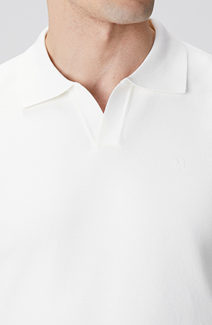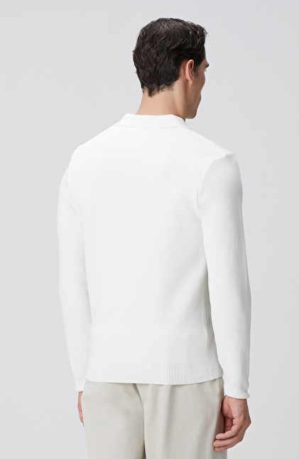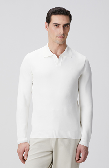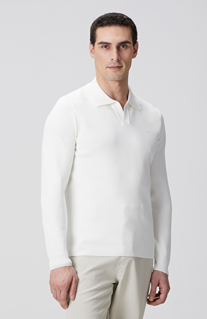 Kırık Beyaz Kısa V Polo Yaka Kazak