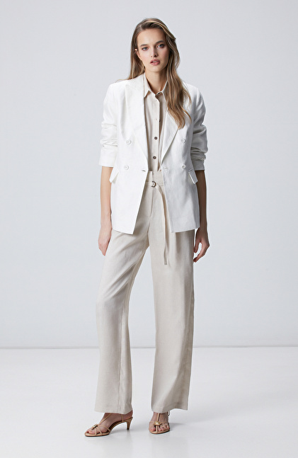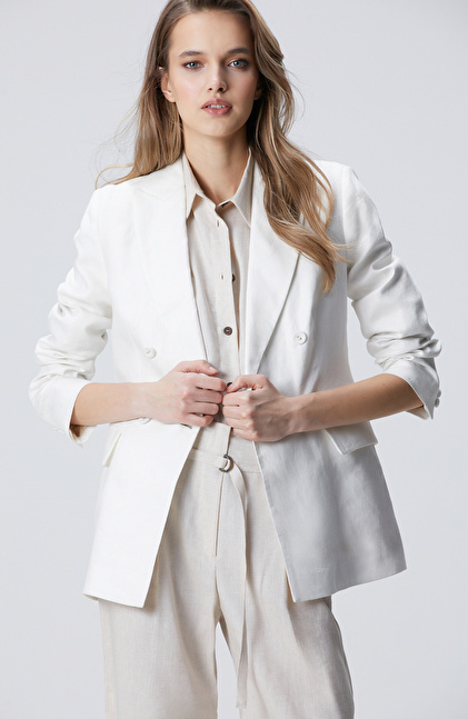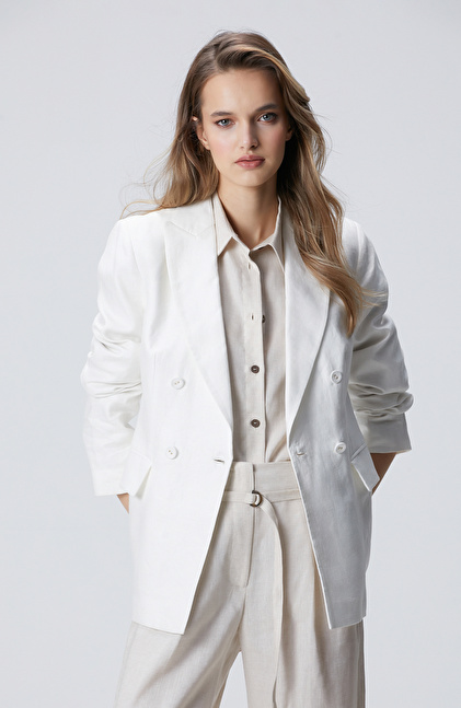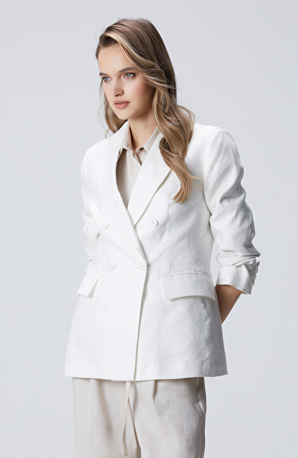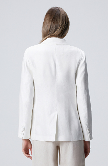 Kırık Beyaz Kruvaze Keten Ceket