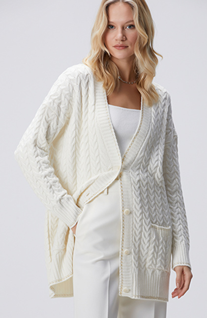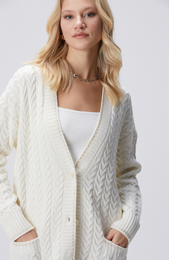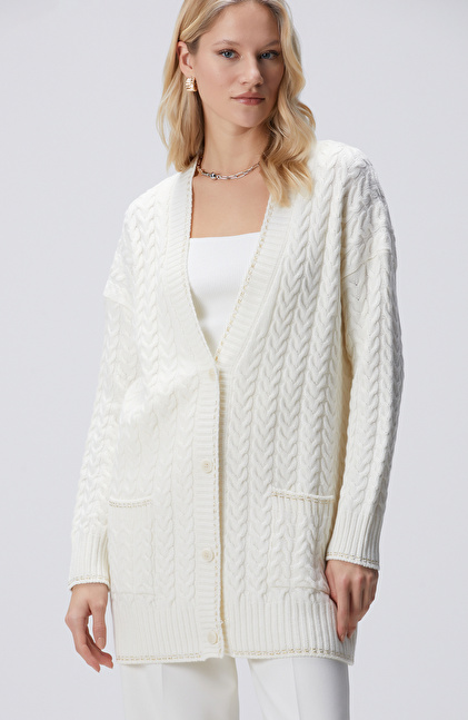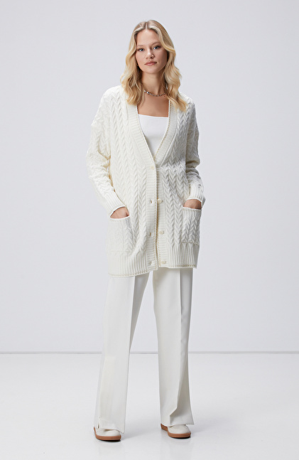Kırık Beyaz Limited Yün Kaşmir Karışımlı Hırka