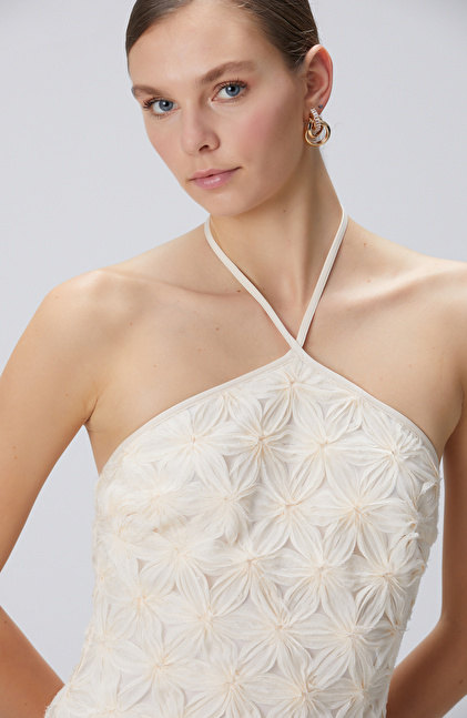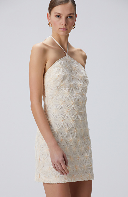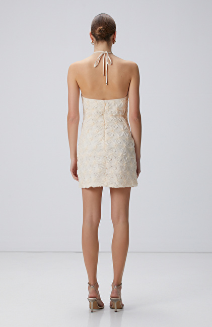 Kırık Beyaz Mini Boy Abiye Elbise