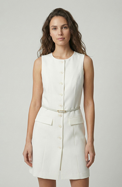 Kırık Beyaz Mini Elbise