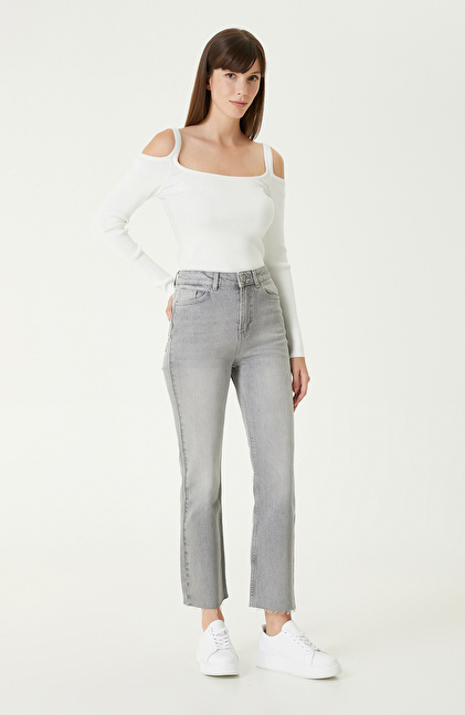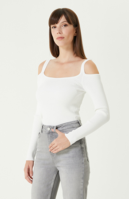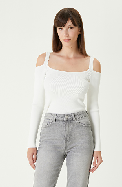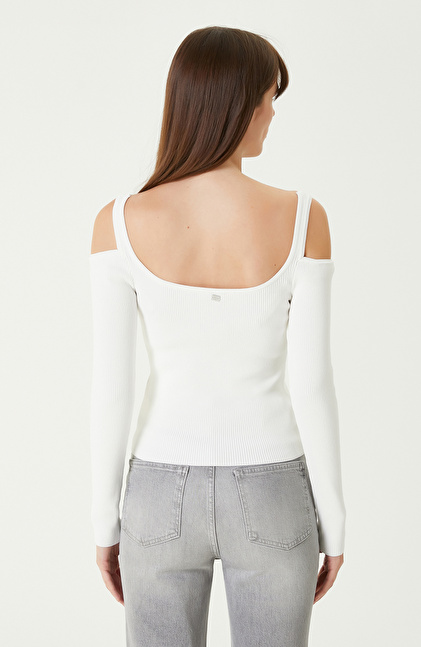 Kırık Beyaz Omuz Detaylı Triko Kazak