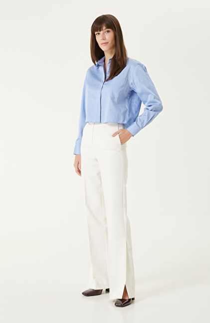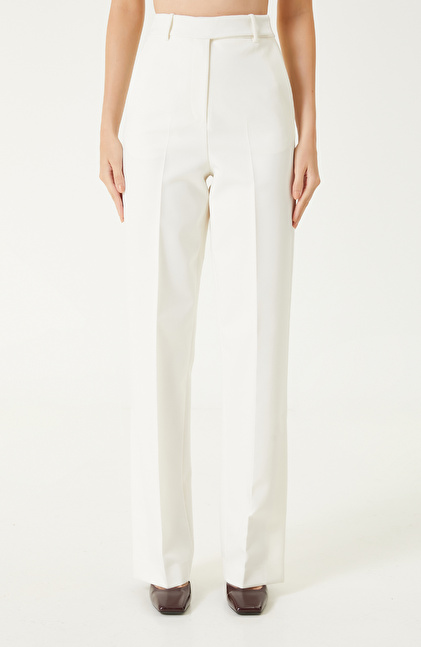 Kırık Beyaz Paçası Yırtmaçlı Pantolon