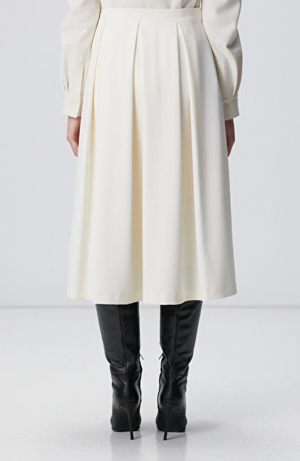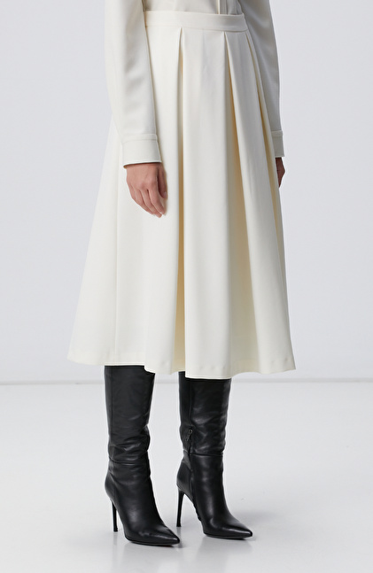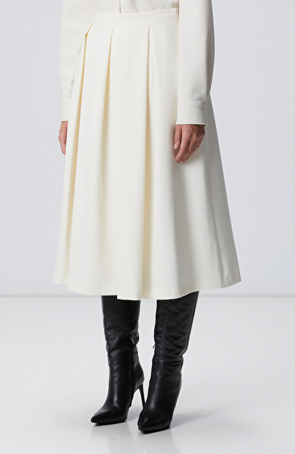 NETWORK Kırık Beyaz Pileli Midi Boy Etek