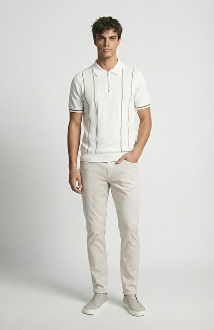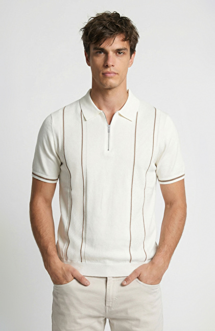 Kırık Beyaz Polo Triko Kazak