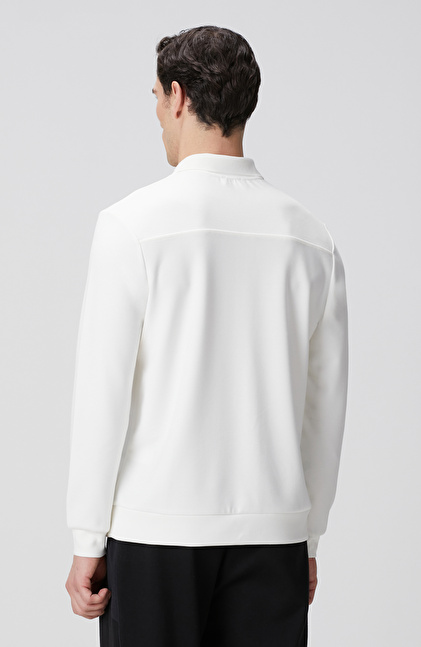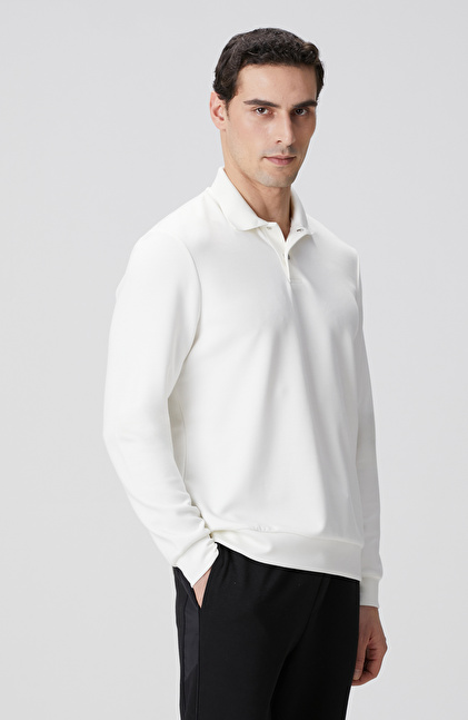 Kırık Beyaz Polo Yaka Çıtçıtlı Sweatshirt