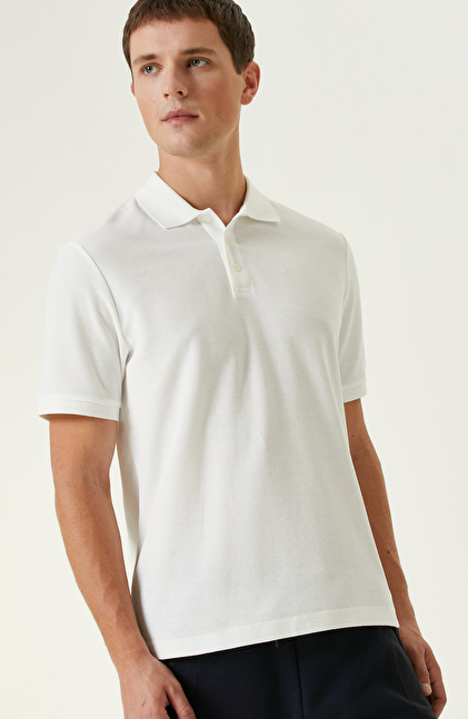 NETWORK Casual Kırık Beyaz Polo Yaka Jakarlı Tshirt