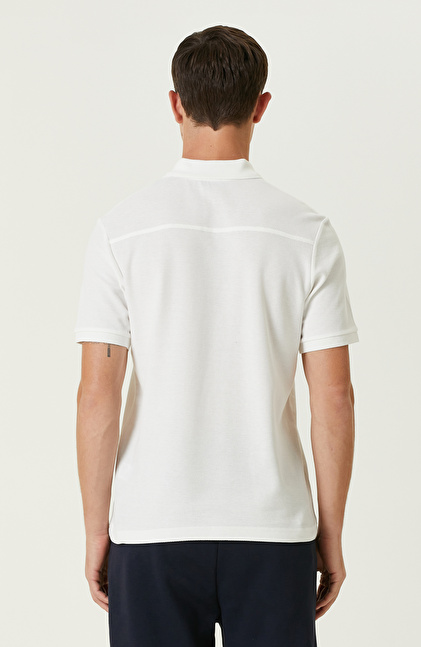 Kırık Beyaz Polo Yaka Jakarlı Tshirt