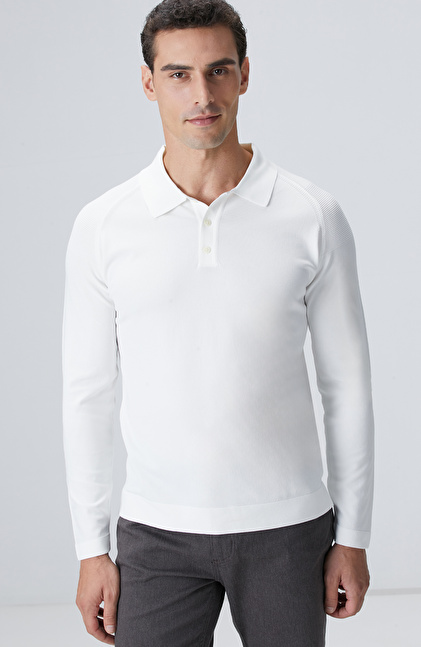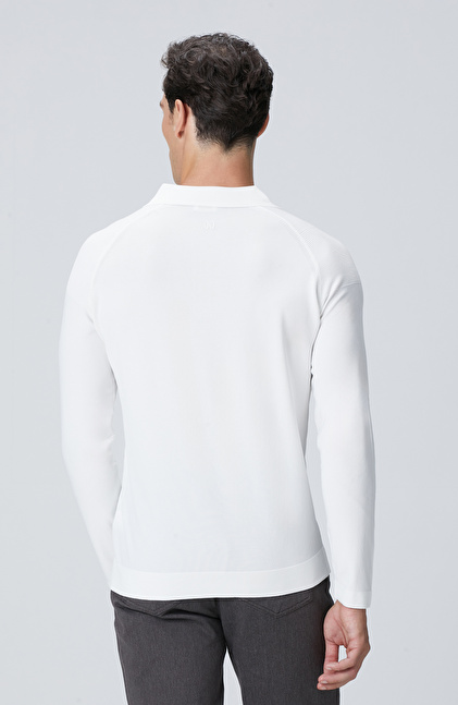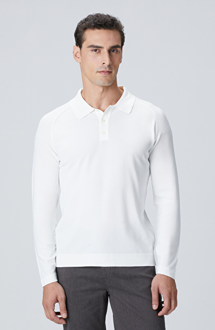 Kırık Beyaz Polo Yaka Triko Kazak