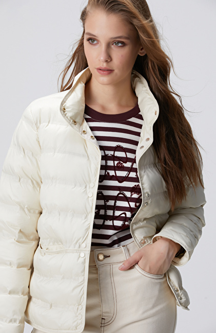 Kırık Beyaz Puffer Mont