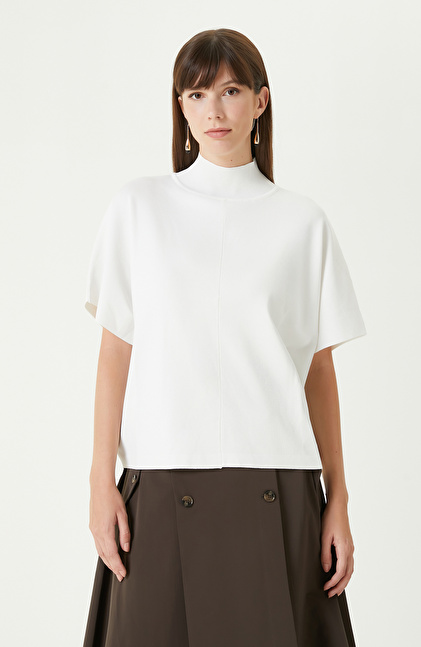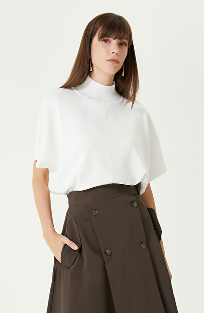 Kırık Beyaz Rahat Kalıp Basıc Triko Kazak