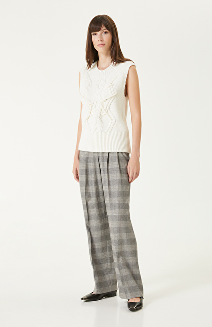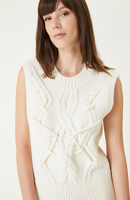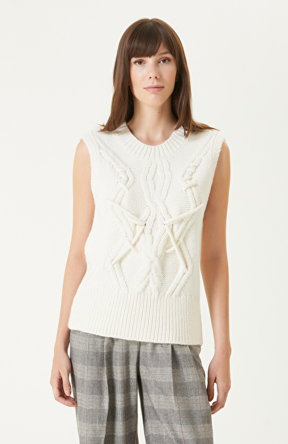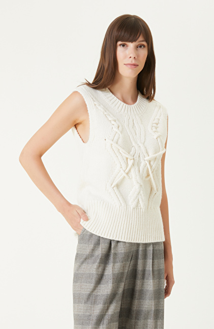 Kırık Beyaz Saç Örgülü Süveter