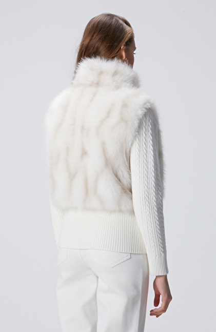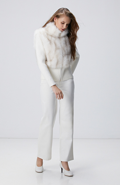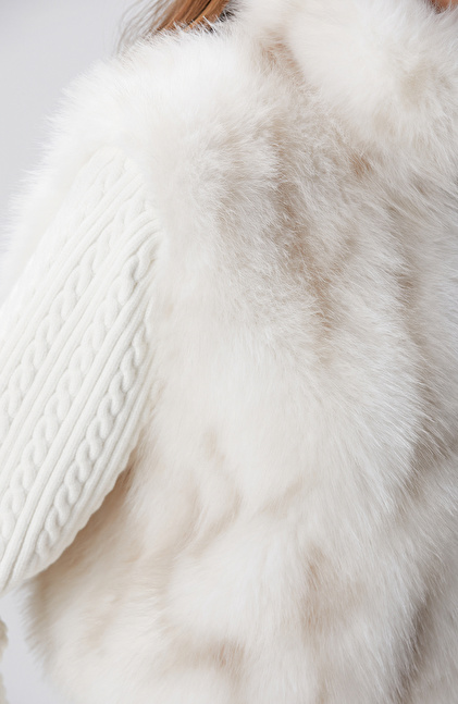 Kırık Beyaz Suni Kürk Detaylı Triko Mont