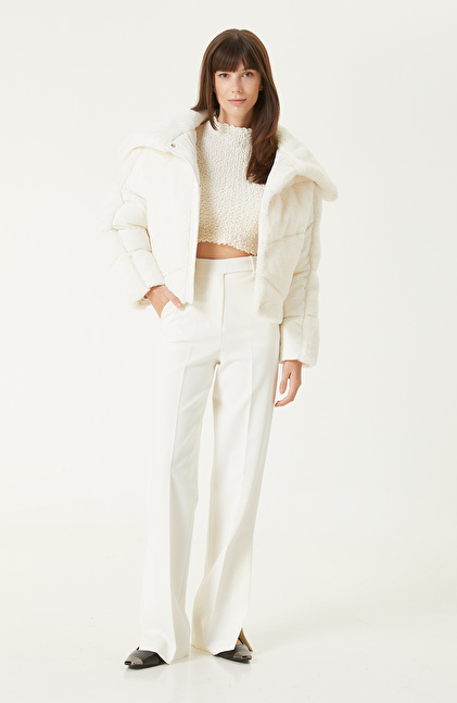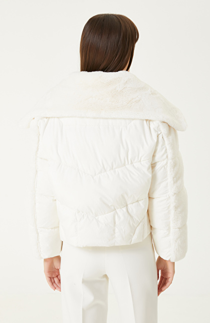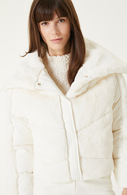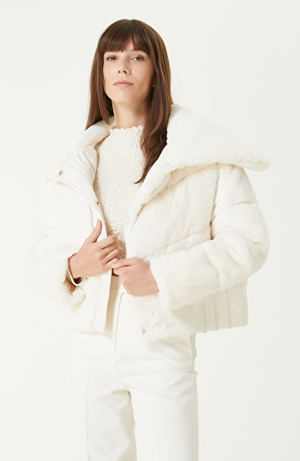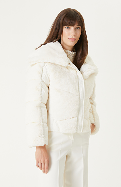 NETWORK Smart Casual Kırık Beyaz Suni Kürk Garnili Mont