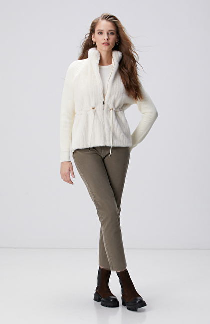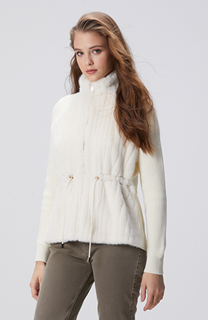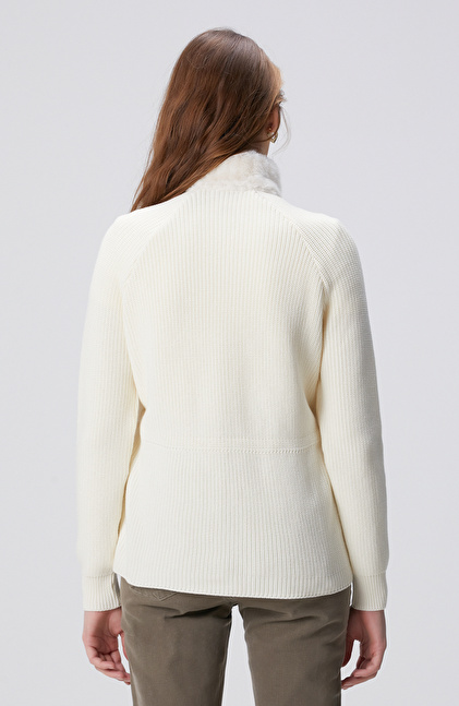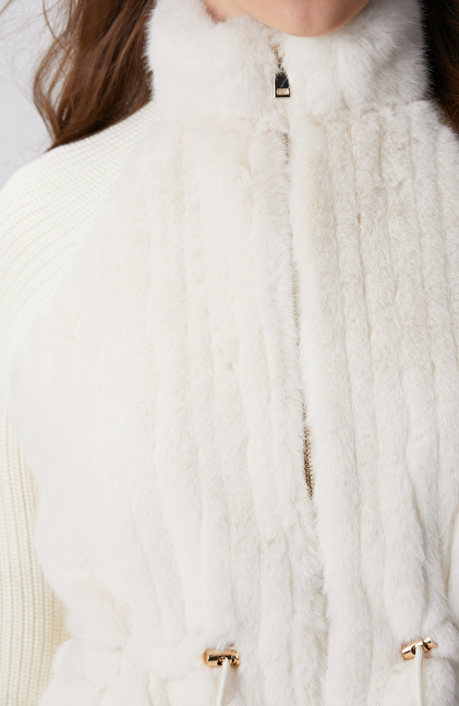 Kırık Beyaz Suni Kürklü Triko Mont