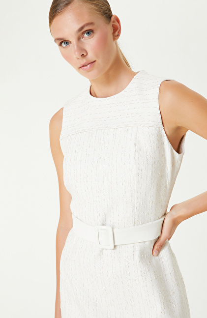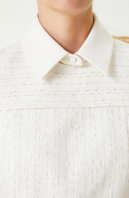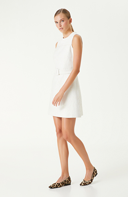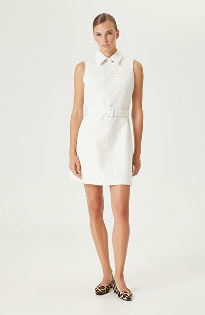 Kırık Beyaz Tweed Desenli Mini Elbise